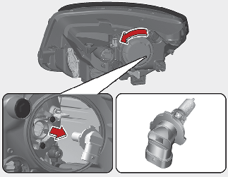 전구(상향/하향등) 어셈블리를 시계반대방향으로 분리하십시오.