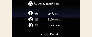 Az információk manuális visszaállításához nyomja le és tartsa lenyomva a kormánykeréken található OK gombot az Accumulated Info (Összesített információ) képernyő megjelenítésekor.