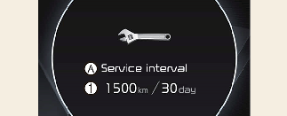 Ha a fennmaradó távolság, illetve idő eléri az 1500 kilométert (900 mérföld) vagy 30 napot, akkor a jármű minden egyes ON helyzetbe állításakor pár másodpercre megjelenik a Szerviz esedékes üzenet.
