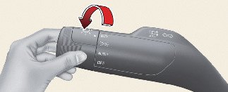 To operate the lights, turn the knob at the end of the control lever to one of the following positions: