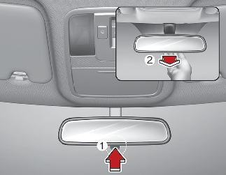 Ao conduzir à noite, para reduzir o brilho proveniente dos faróis dos veículos que seguem atrás de si, puxe o manípulo da função diurna/noturna na sua direção.