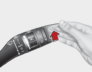 Empurre a alavanca para pulverizar líquido limpa-vidros na janela traseira e executar o curso dos limpa para-brisas traseiro em 1~3 ciclos. O borrifar e a limpeza continuarão até soltar a alavanca.