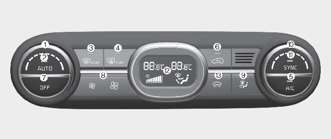 Botão de controlo da temperatura para o passageiro