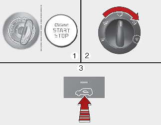 Coloque o interruptor de ignição ou o botão ENGINE START/STOP (Ligar/desligar o motor) na posição ON (Ligado).