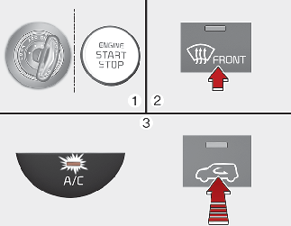 A luz indicadora do botão de controlo do ar da admissão de ar piscará 3 vezes. Isso significa que o desembaciador automático está cancelado ou regressou ao estado programado.