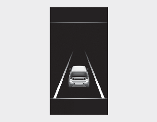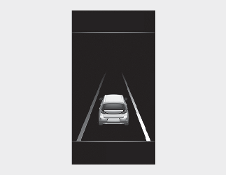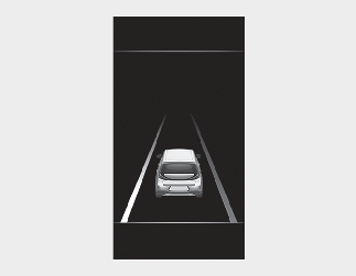 Quando são detetadas linhas de faixa de rodagem (ou limites da estrada), as linhas da faixa de rodagem no painel de instrumentos mudam de cinzento para branco e a luz indicadora verde (