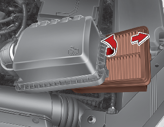 Desaperte os retentores da tampa do filtro de ar e abra a tampa.
