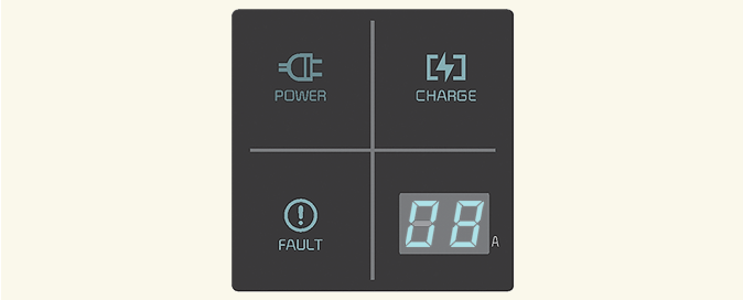 Före anslutning av laddkontakt till fordon (POWER Grön ON, FAULT Röd blinkande)