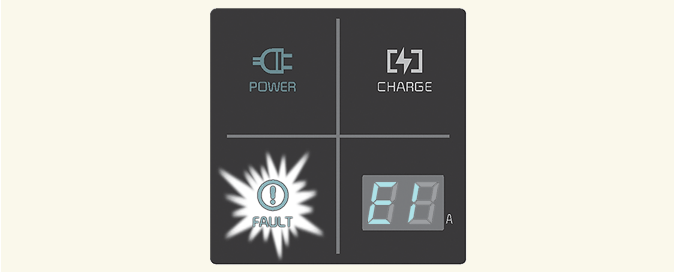 ON (på): Laddning Blinkar: Aktuell gräns beroende på hög kontakttemperatur eller hög inre temperatur |