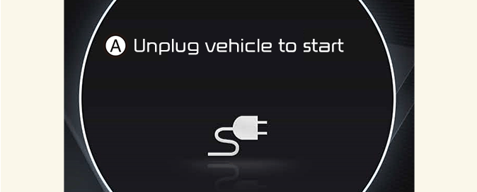 Meddelandet visas när du startar fordonet utan att ha kopplat loss laddningskabeln och kommer inte att växla ur parkering. Koppla ur laddkabeln och starta sedan bilen.