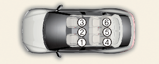 Tabellen är baserad på vänsterstyrda fordon. Förutom för passagerarsätet är tabellen giltig för RHD-bil. För RHD-bilens främre passagerarsäte, använd information för passagerarplats nummer 3.