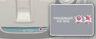 Om strömbrytaren för passagerarsidans frontkrockkudde är i OFF-läget är krockkudden urkopplad.