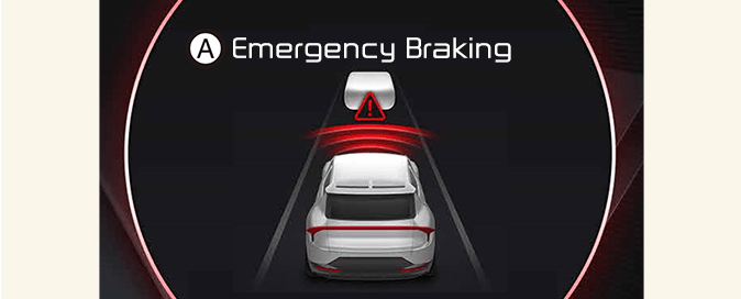 Om fordonet är utrustat med främre hörnradar, bedömer funktionen att det är svårt att undvika en kollision, även genom att byta körfält, och funktionen aktiveras när fordonshastigheten är mellan cirka 10~100 km/h (6~62 brittiska mil/timma).
