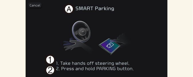 När smartparkeringsfunktionen avbryts stannar fordonet automatiskt, växeln byts till P (parkering) och EPB (elektronisk parkeringsbroms) kopplas in.