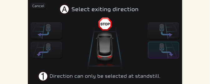 Om funktionen sätts på igen efter parallellparkeringen är klar med Remote Smart Parking Assist (fjärrstyrt smart parkeringsassistanssystem), kan Smart Exit-funktionen användas.