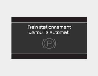 Si vous essayez de démarrer en appuyant sur la pédale d'accélérateur avec l'EPB appliqué, mais qu'il ne se désactive pas automatiquement, un signal retentit une fois et un message s'affiche.