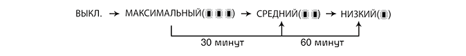 При каждом нажатии переключателя настройка температуры сиденья изменяется следующим образом: