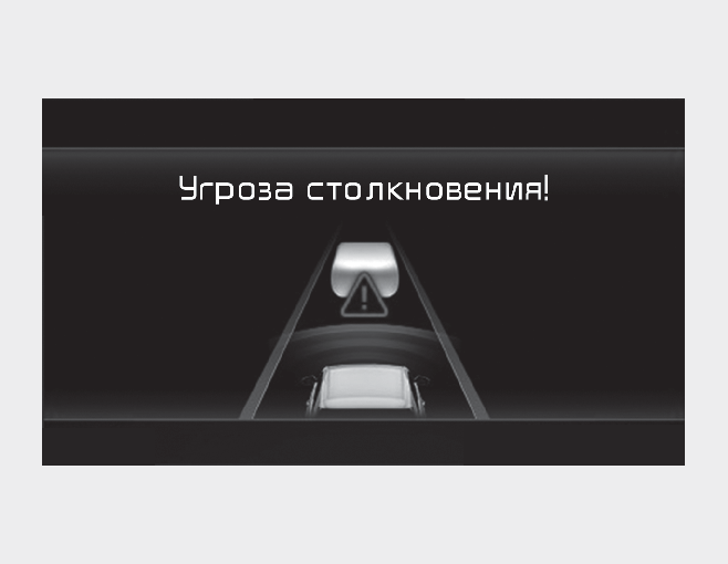 Если работает система интеллектуального круиз-контроля и существует высокий риск столкновения с движущимся впереди транспортным средством, на приборной панели отобразится предупреждающее сообщение «Collision Warning» (Угроза столкновения) и прозвучит звуковое сообщение для оповещения водителя. При движении необходимо постоянно следить за дорожной ситуацией впереди и в случае необходимости использовать педаль тормоза для снижения скорости с целью поддержания безопасной дистанции.