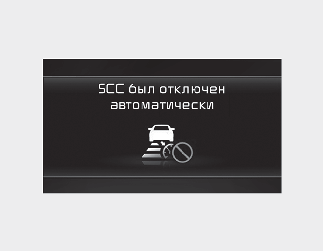 Если система интеллектуального круиз-контроля временно отключена, на приборной панели появится предупреждающее сообщение «Smart Cruise Control canceled» (Система круиз-контроля отключена) и прозвучит звуковое сообщение для оповещения водителя.