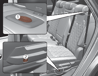 Apăsați comutatorul (1) din partea superioară a scaunului de pe rândul 2 sau comutatorul (2) din partea inferioară a scaunului de pe rândul 2 pentru a debloca.