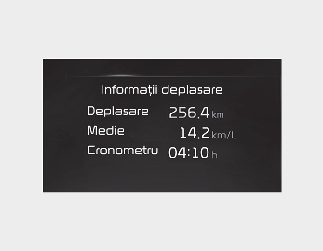 Modul Trip computer afișează informații legate de parametrii de rulare a vehiculului, inclusiv consumul de combustibil, informații despre distanța parcursă și durată.