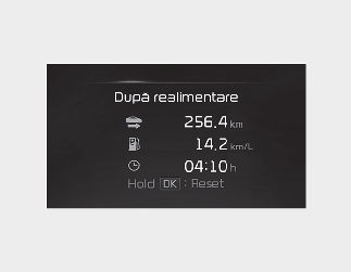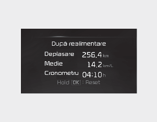 Dacă apăsați butonul "OK" mai mult de 1 secundă după afișarea Driving Information, informațiile vor fi resetate.