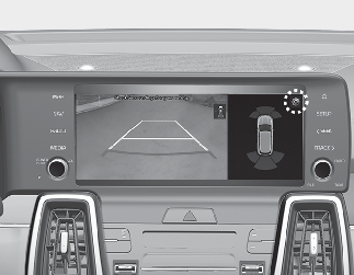Selectați „Setting → Screen → Extended Rear View Monitor (Setări → Ecran → Cameră vedere spate extinsă)” din meniul Setări al sistemului de infotainment pentru a utiliza funcția Cameră vedere spate extinsă.