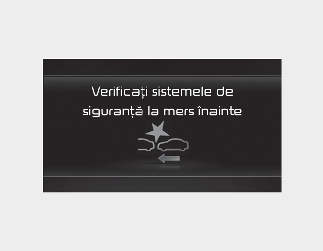 Când asistența pentru evitarea coliziunilor frontale nu funcționează corect, va fi afișat mesajul de avertizare „Verificați