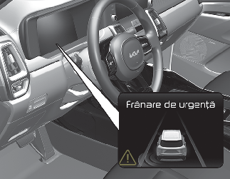 Când vehiculul este oprit din cauza frânării de urgență, mesajul de avertizare „Drive carefully” (Conduceți cu atenție) va fi afișat pe panoul de bord.