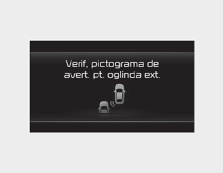 Când indicatorul de avertizare de pe oglinda laterală nu funcționează corect, mesajul de avertizare „Check side view mirror warning light” (Verificați indicatorul de avertizare de pe oglinda laterală) va fi afișat pe panoul de bord. Vă recomandăm să duceți vehiculul la un dealer autorizat/partener de service Kia pentru inspecție.