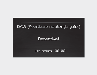Când șoferul resetează avertizarea de atenționare șofer, ultimul timp de pauză este setat la 00:00 și nivelul atenției șoferului este setat la Ridicat.