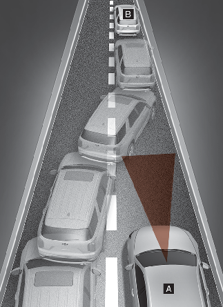 În următoarele cazuri, vehiculul din față nu poate fi detectat de senzor: