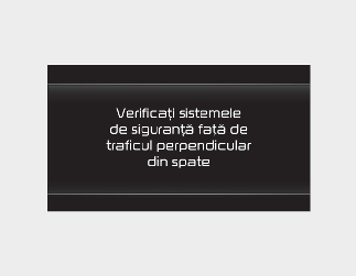 Când sistemul de Asistență pentru evitarea coliziunilor în traficul din spate nu funcționează corect, mesajul de avertizare va fi afișat pe panoul de bord, iar funcția se va opri automat sau va fi limitată. Vă recomandăm să duceți vehiculul la un dealer autorizat/partener de service Kia pentru inspecție.