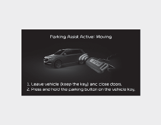 ) de pe cheia Smart Key, va fi afișat un mesaj care anunță șoferul că funcția Deplasare înainte/înapoi de la distanță este