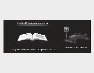 Când funcția Asistare la parcare inteligentă de la distanță este activă, funcția poate fi anulată, iar mesajul 'Parking Assist Canceled' (Asistare parcare anulată) poate fi afișat indiferent de stadiul operațiunii de parcare. În funcție de situație, pot fi afișate și ale mesaje. Urmați instrucțiunile afișate pe ecranul sistemului Infotainment în timpul parcării vehiculului cu funcția Asistare la parcare inteligentă de la distanță. Supravegheați împrejurimile și aveți grijă la utilizarea funcției.