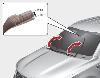 După oprirea motorului, mutați comutatorul ștergătoarelor în poziția de ștergere singulară (MIST) în interval de 20 secunde și mențineți comutatorul în această poziție pentru mai mult de 2 secunde, până când lamela ștergătorului ajunge în poziția superioară maximă.
