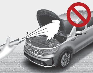 Spălarea cu apă în compartimentul motorului, inclusiv spălarea cu apă cu înaltă presiune, poate cauza defectarea circuitelor electrice dispuse în compartimentul motorului.