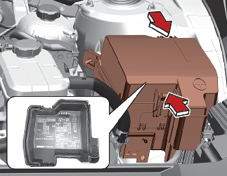 Sicherungskasten im Motorraum (Abdeckung der Batterieklemmen)
