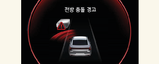 경고문 및 경고음을 통해 전방 충돌 경고를 알립니다. 설정 메뉴에서 충돌방지 보조를 선택한 경우 전방 충돌 경고가 발생했을 때 제동 제어가 작동할 수 있습니다.