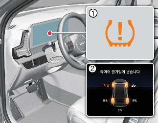 개별 저압 타이어 위치 및 공기압 표시