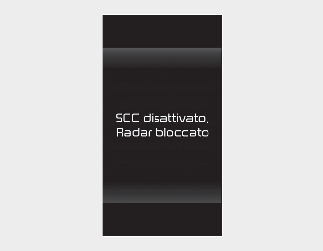 Se questo si verifica, appare il messaggio 'Cruise Control intelligente disabilitato. Radar bloccato oscurato' (o 'SCC disabilitato Messaggio di avviso 'Radar bloccato', inoltre si accenderanno le spie nel quadro strumenti.