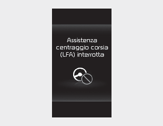 Se il conducente non ha ancora le mani sul volante dopo l'avviso per le mani staccate dal volante, apparirà il messaggio "Assistenza centraggio corsia (LFA) disattivata" e l'Assistenza centraggio corsia sarà automaticamente disattivata.