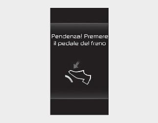 Questo messaggio di avvertenza compare quando il veicolo viene guidato a bassa velocità su una forte pendenza e l'apparecchiatura rileva che non viene utilizzato il pedale del freno.