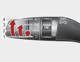 Para utilizar las luces, gire el mando del extremo de la palanca de control a una de las posiciones siguientes: