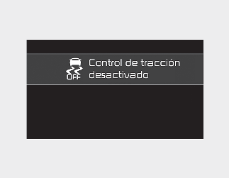 Pulse el botón ESC OFF durante más de 3 segundos. El testigo indicador ESC OFF se encenderá, aparecerá un mensaje y sonará una señal acústica de aviso de ESC OFF. En este estado, la función de control del motor y la función de control de los frenos no están operativas. En otras palabras, la función de control de estabilidad del vehículo no está operativa.