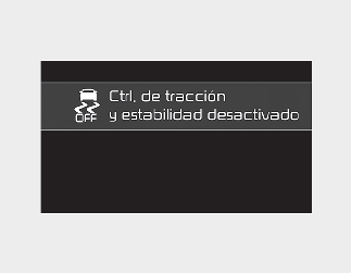 Pulse brevemente el botón ESC OFF (el testigo indicador ESC OFF se ilumina y aparece un mensaje). En este estado, la función de control del motor no está operativa. En otras palabras, la función de control de la tracción no está operativa, solo está operativa la función de control de los frenos.