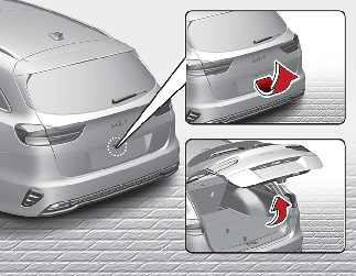 • Wenn alle Türen verriegelt sind und Sie die Entriegelungstaste für die Heckklappe am Smart-Key länger als eine Sekunde drücken, wird die Heckklappe entriegelt. Wenn die Heckklappe geöffnet und danach wieder geschlossen wird, wird sie automatisch verriegelt.
