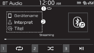 • Je nach dem angeschlossenen Bluetooth-Gerät, Mobiltelefon oder Musikplayer unterscheiden sich die Bedienelemente für die Wiedergabe.