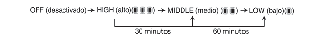 • Cada vez que se pulse el interruptor, el ajuste de la temperatura del asiento cambiará como sigue: