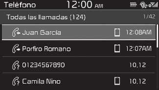 • Solo se accede al historial de llamadas cuando se conecta el teléfono móvil al sistema.